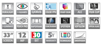 • Tecnología Color PPUTM, que hace que cada pixel cumpla la normativa DICOM, garantizando así la uniformidad en colores y escalas de grises.